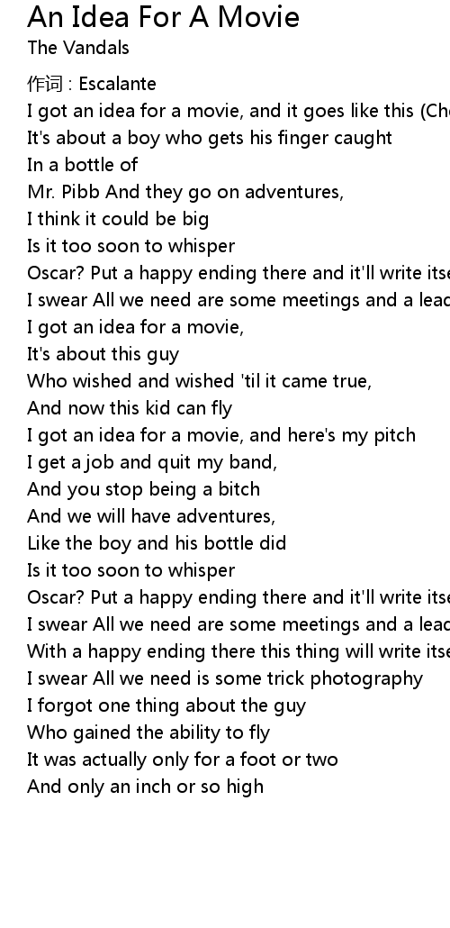 | Song | An Idea For A Movie |