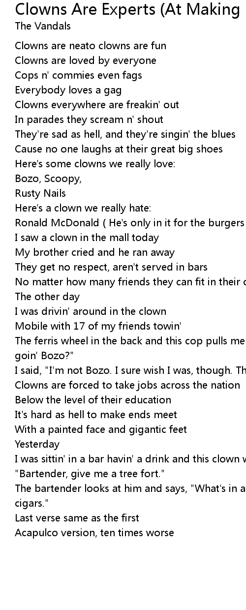 I said, "I'm not Bozo. I sure wish I was, though. The man's a friggin' genius." |