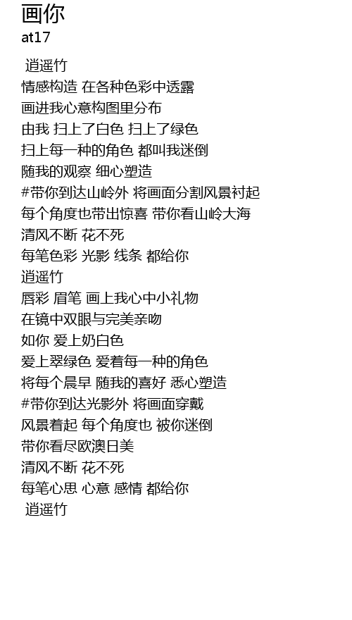| [00:17.63] | 由我 扫上了白色 扫上了绿色 |