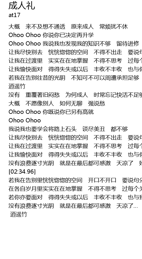 | [00:34.75] | Ohoo Ohoo 我说我也发现我的知识不够 留待进修 |