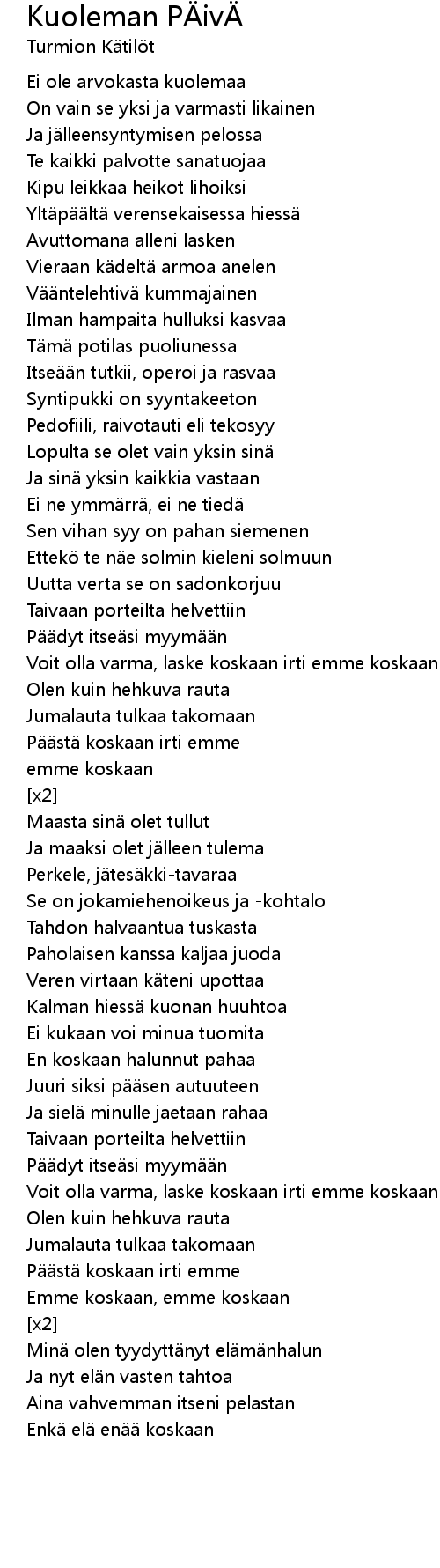 | Song | Kuoleman PÄivÄ |