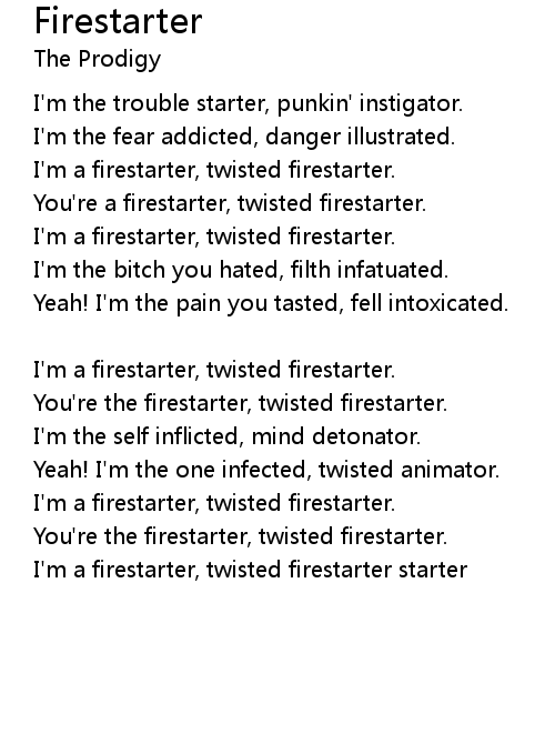 I'm a firestarter, twisted firestarter starter |
