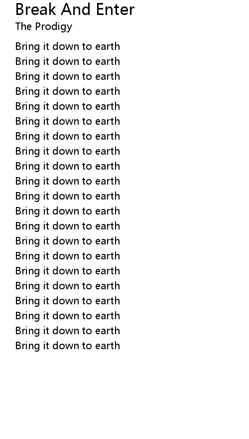 | Song | Break And Enter |