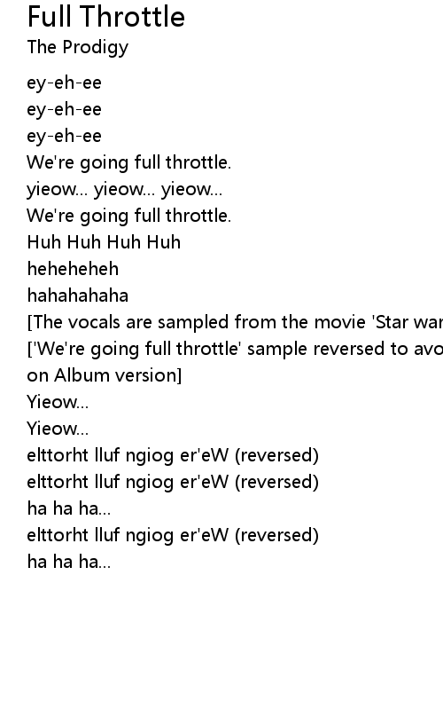 | ['We're going full throttle' sample reversed to avoid copyright problems. Only on Album version] | |
