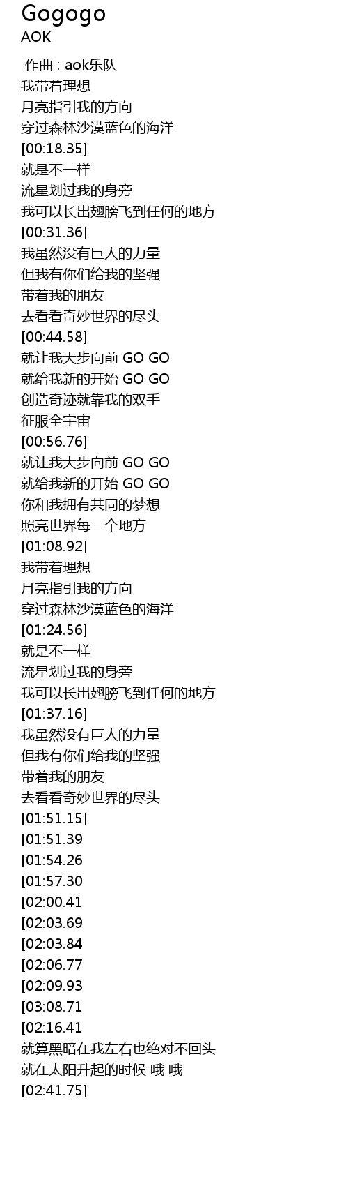 | [02:56.18][02:03.84] | 就让我大步向前 GO GO |