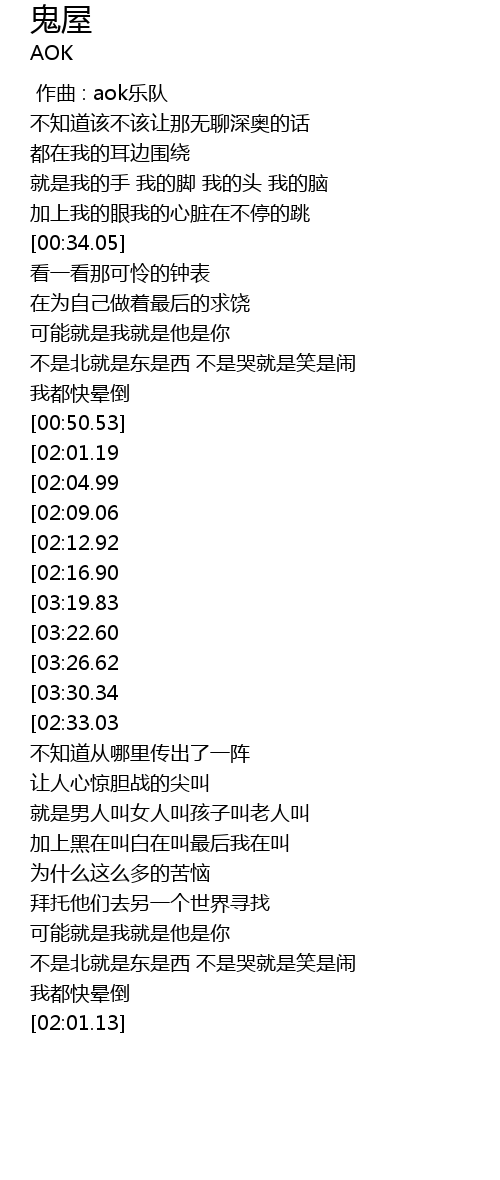 | [00:00.00] | 作曲 : aok乐队 |