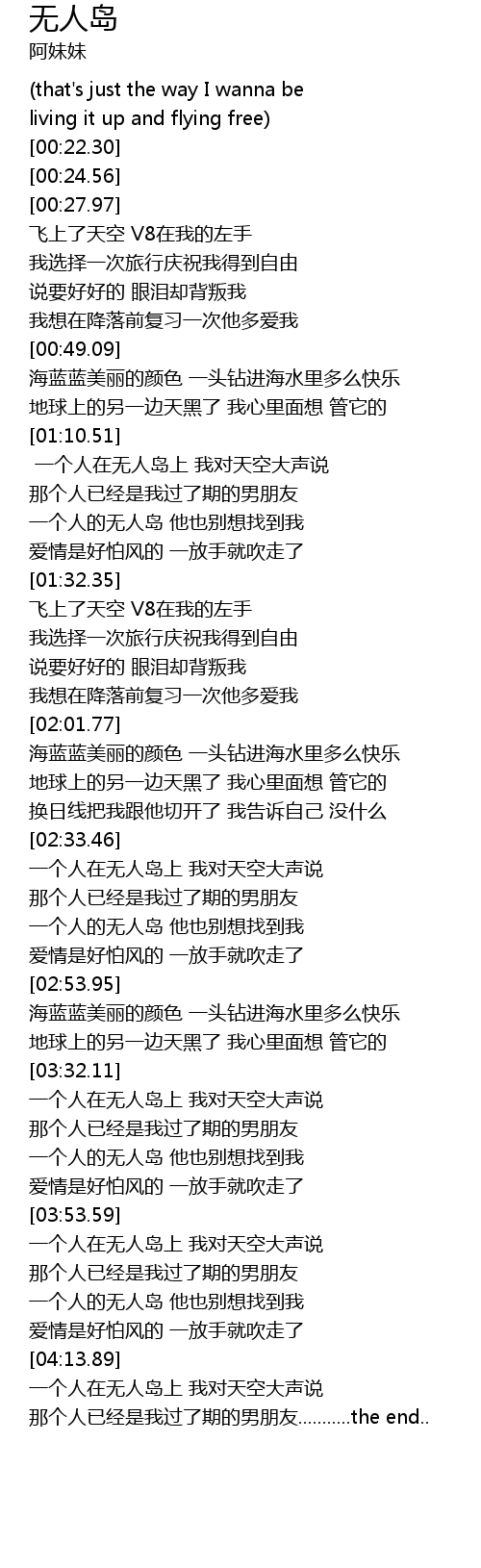 | [04:03.51] | 一个人的无人岛 他也别想找到我 |
