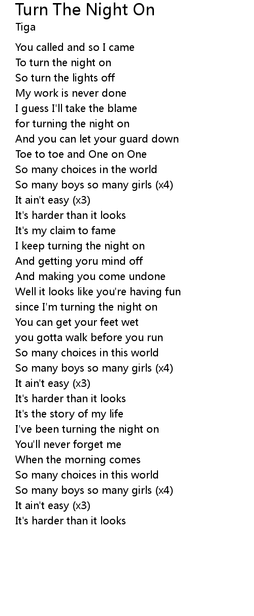 | since I'm turning the night on | |