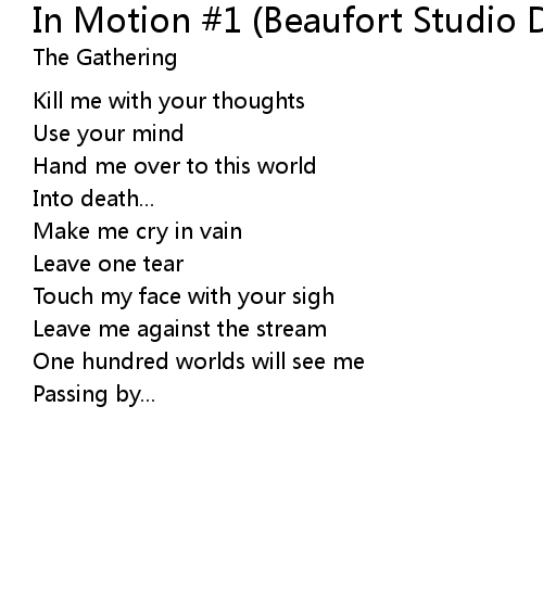 | Song | In Motion #1 (Beaufort Studio Demo) |