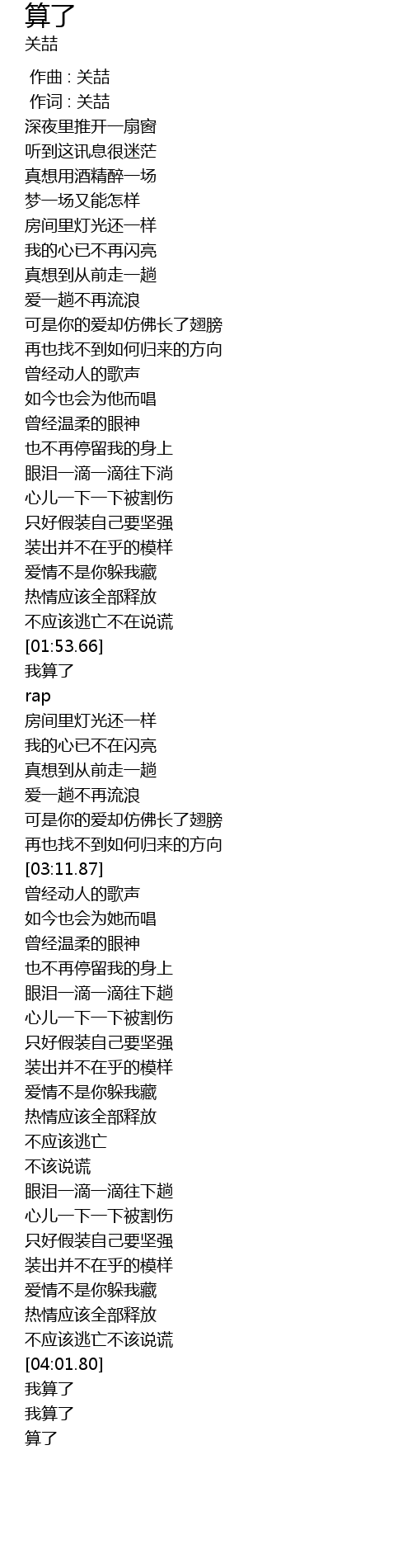 | [01:39.47] | 眼泪一滴一滴往下淌 |
