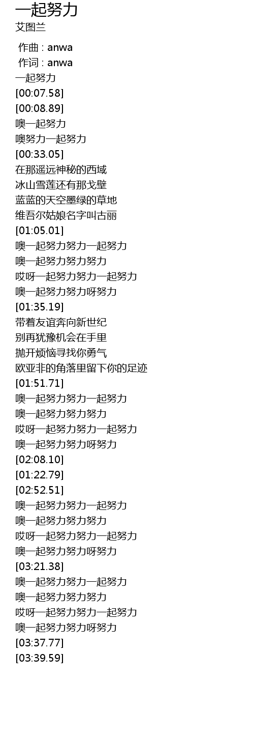 | [00:01.84] | 一起努力 |