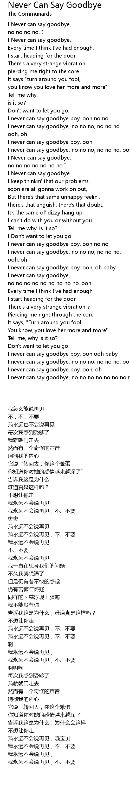 I Never can say goodbye, |