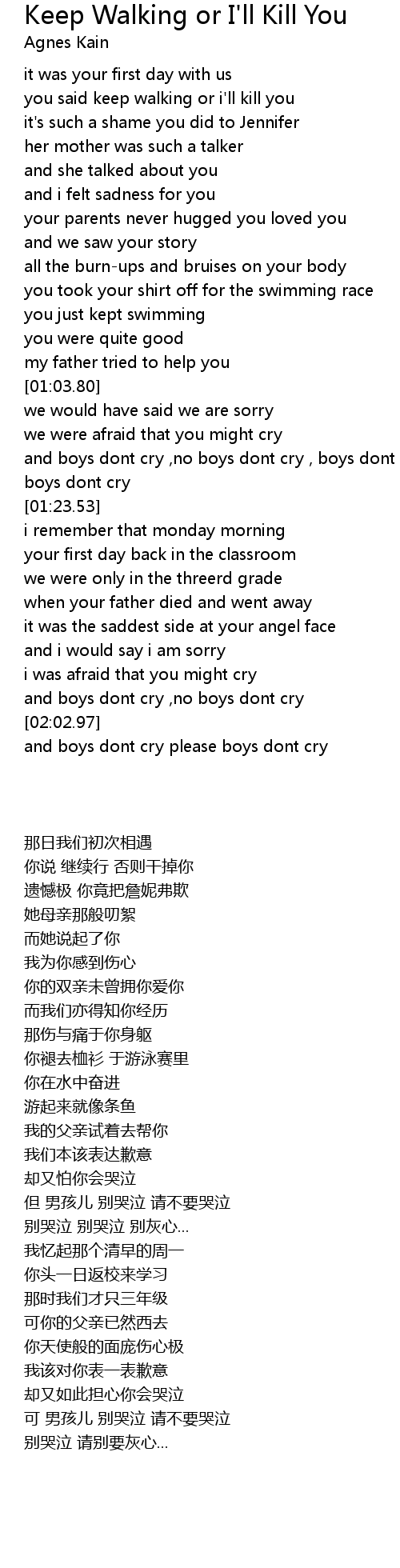 | [00:19.51] | you said keep walking or i' ll kill you |