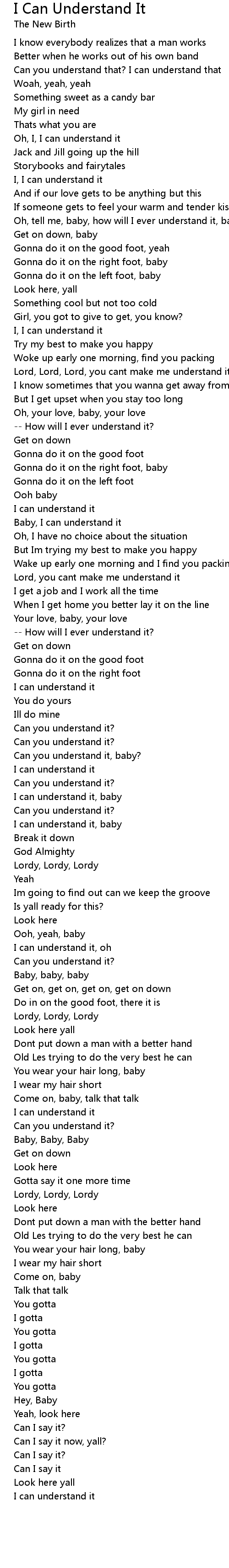 Baby, I can understand it |