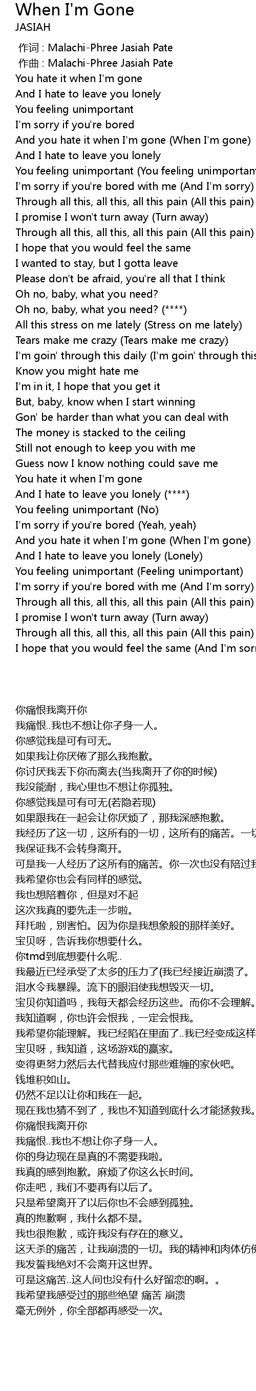 | [00:31.84] | And you hate it when I' m gone When I' m gone |