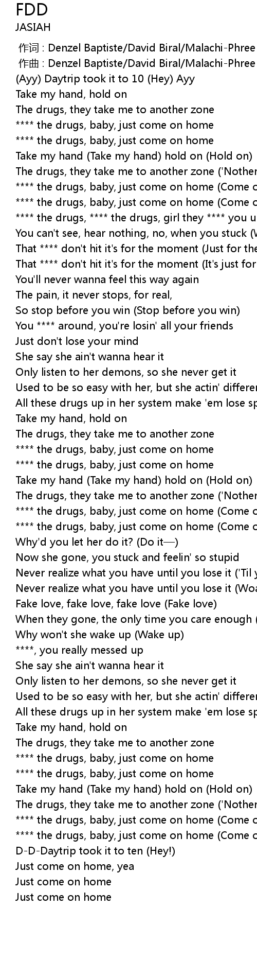 | [00:30.40] | **** the drugs, baby, just come on home (Come on home) |