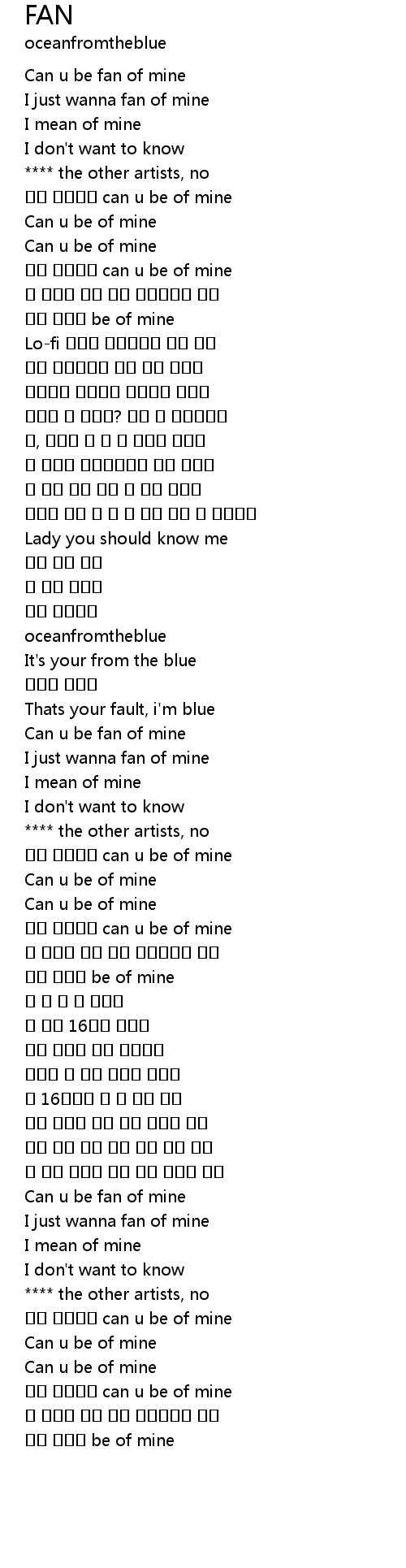 | [02:13.446] | Can u be fan of mine |