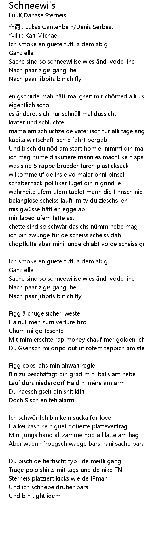 | Sache sind so schneewiiise wies ndi vode line | |
