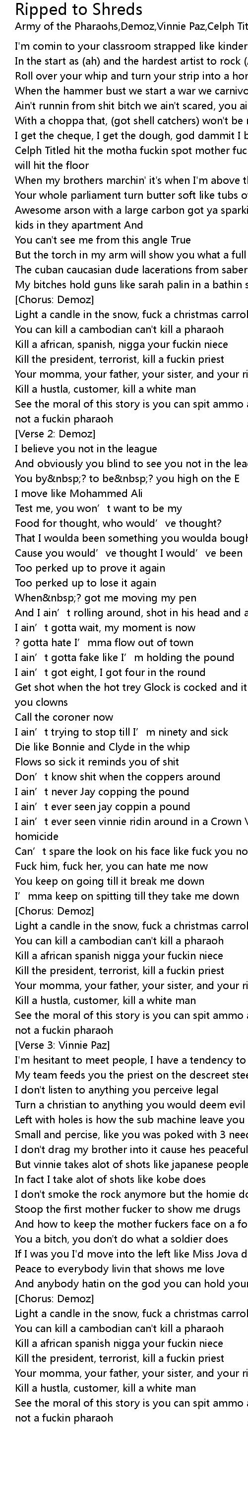 | Kill the president, terrorist, kill a fuckin priest | |