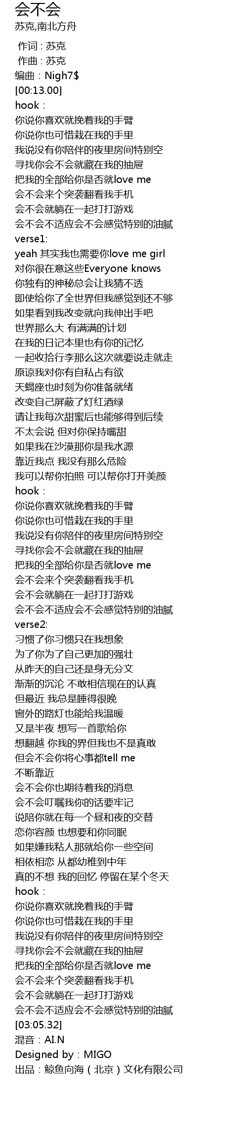| [00:45.45] | yeah 其实我也需要你love me girl |
