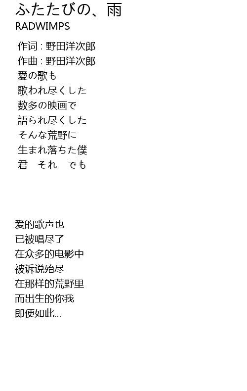 | [00:00.00] | 作词 : 野田洋次郎 |