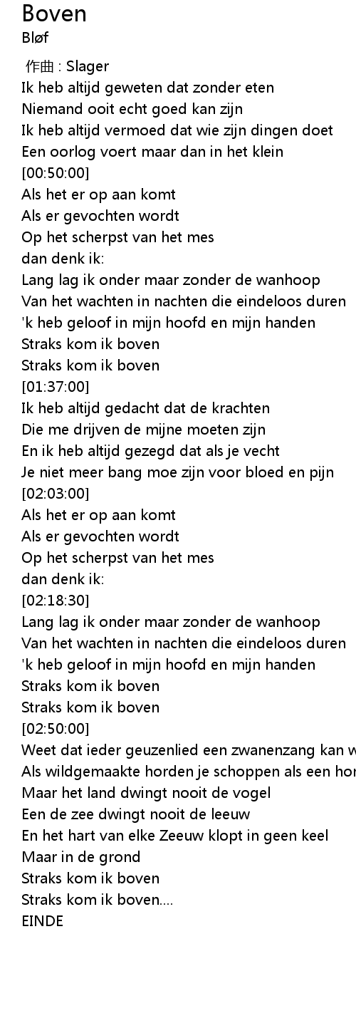 | [02:19:00] | Lang lag ik onder maar zonder de wanhoop |