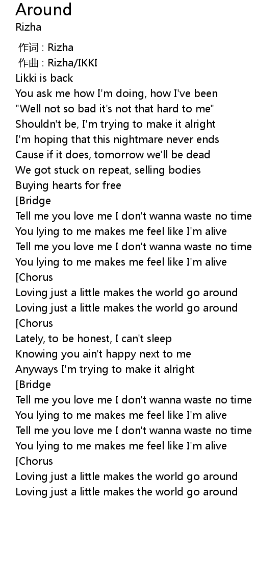 | [01:18.19] | Loving just a little makes the world go around |