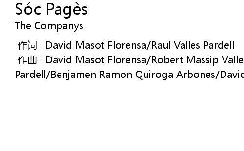 | [00:00.000] | 作曲 : David Masot Florensa/Robert Massip Valles/Raul Valles Pardell/Benjamen Ramon Quiroga Arbones/David Rovira Puig/Jordi Moragues Pijuan |