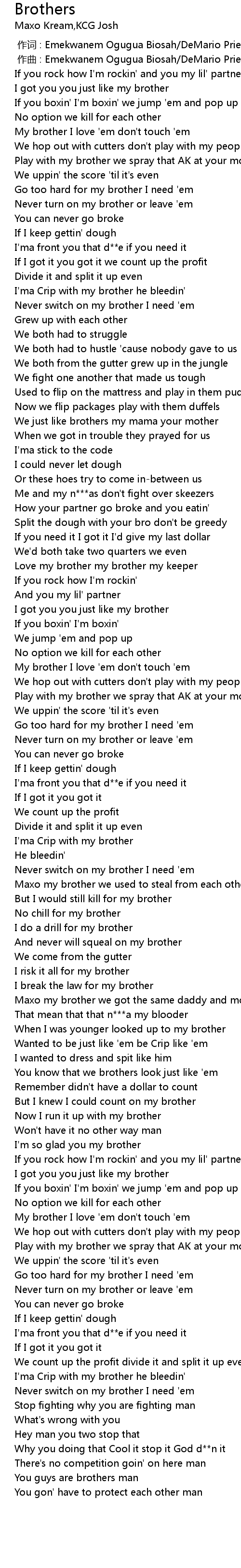 | [01:48.78] | Maxo my brother we got the same daddy and mother |