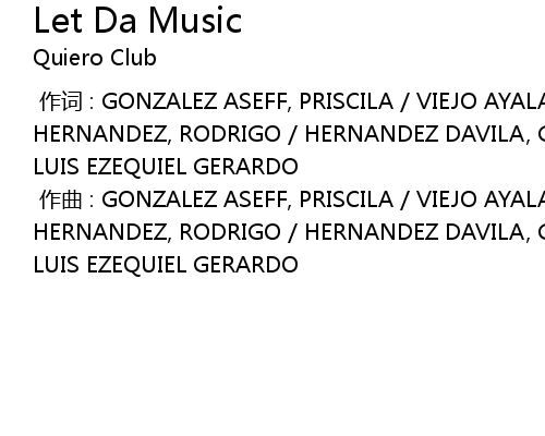 | [00:00.00-1] | 作词 : GONZALEZ ASEFF, PRISCILA / VIEJO AYALA, MARCELA / MARTINEZ HERNANDEZ, RODRIGO / HERNANDEZ DAVILA, GUSTAVO MAURICIO / DOMINGUEZ QUIJANO, LUIS EZEQUIEL GERARDO |