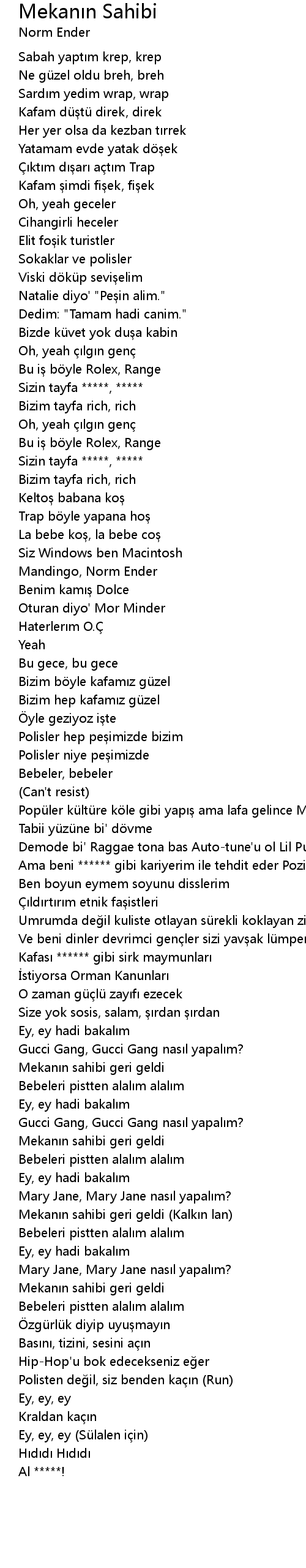| Song | Mekanın Sahibi |
