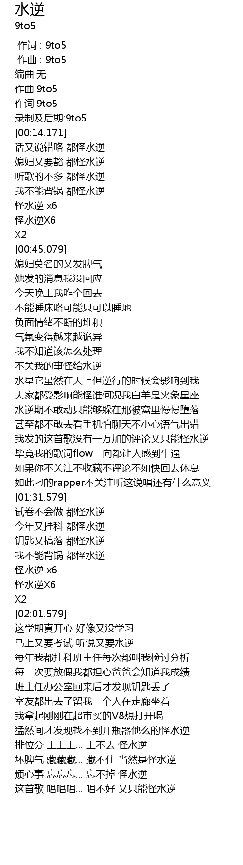 | [02:45.579] | 这首歌 唱唱唱... 唱不好 又只能怪水逆 |
