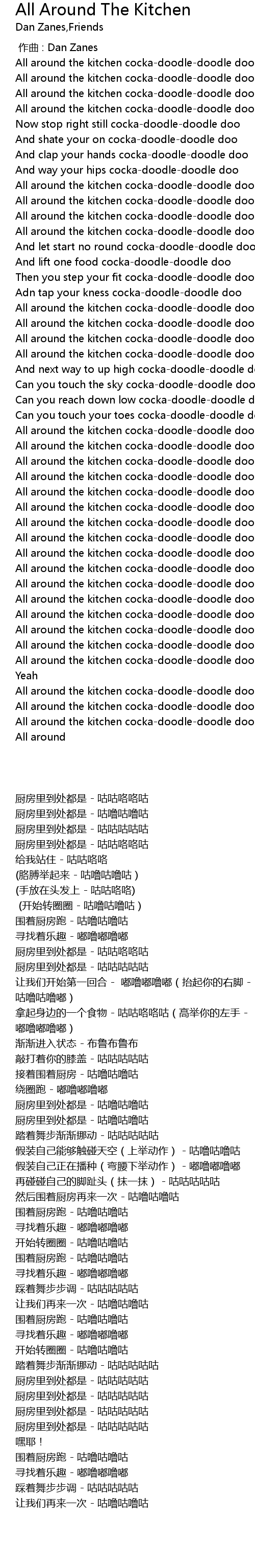 | [00:18.470] | All around the kitchen cocka-doodle-doodle doo |
