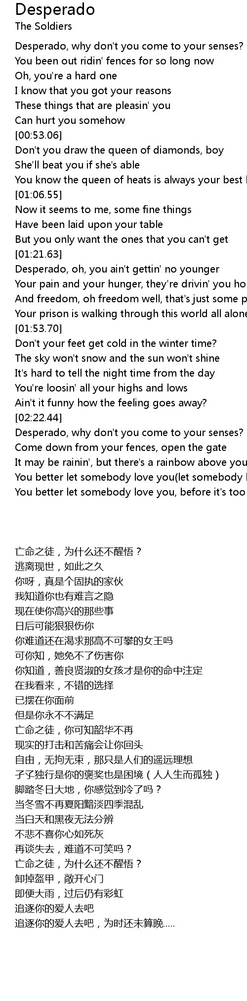 Desperado, why don't you come to your senses? |