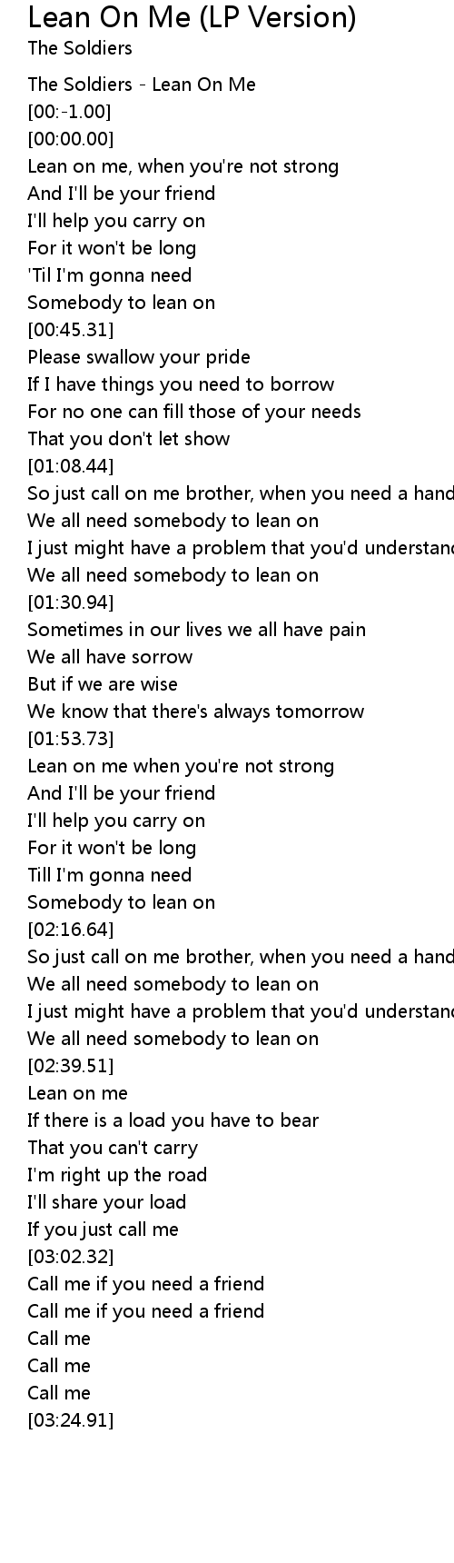 The Soldiers - Lean On Me |