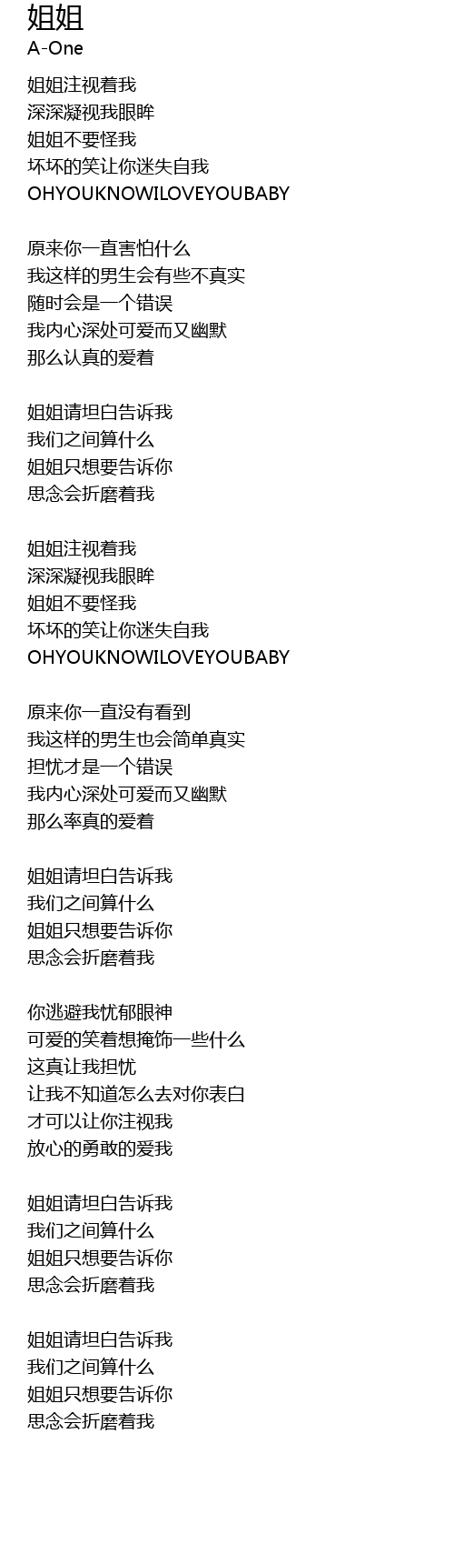 | jiě jie zhǐ xiǎng yào gào sù nǐ | |