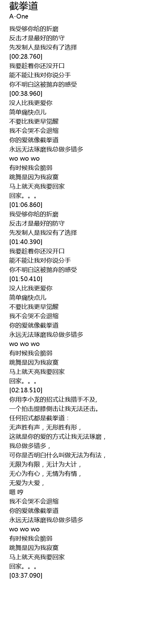 | [03:18.880] | 你的爱就像截拳道 |