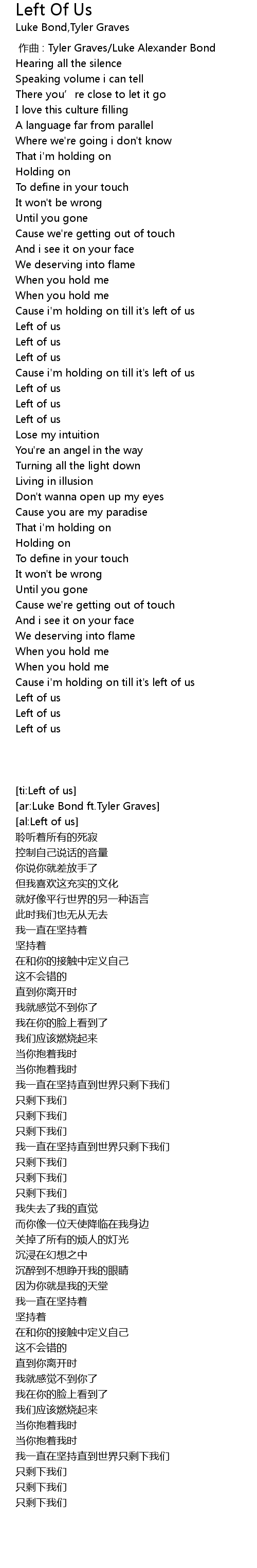 | [00:00.00] | 作曲 : Tyler Graves/Luke Alexander Bond |