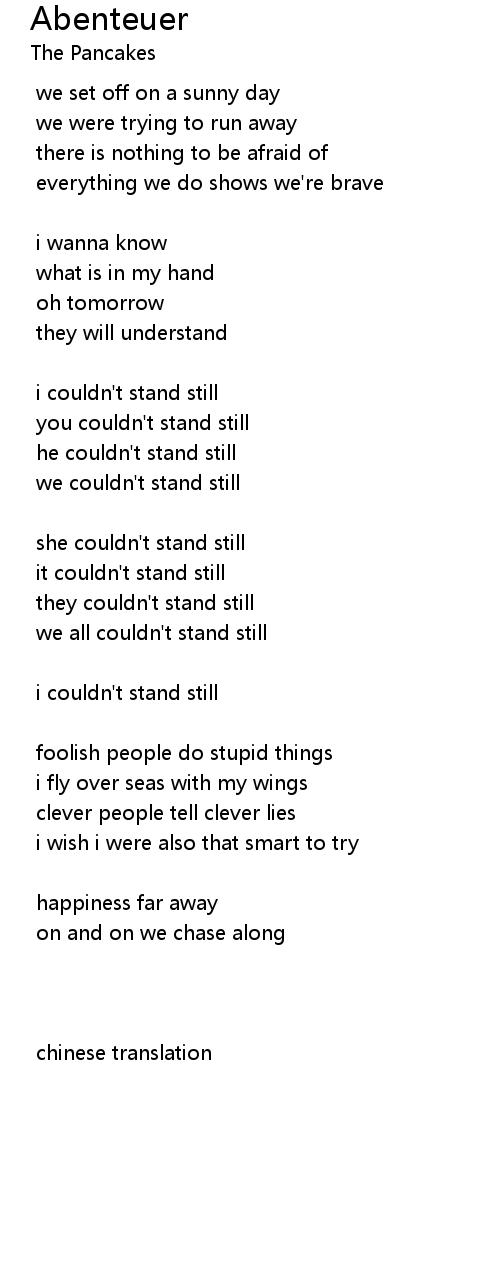 | we couldn' t stand still | |