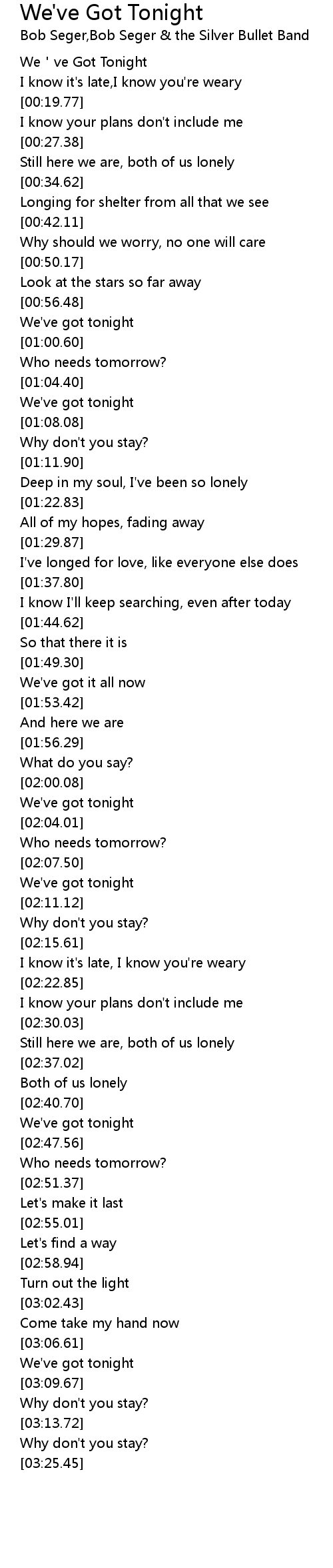 | [00:15.46] | I know it' s late, I know you' re weary |