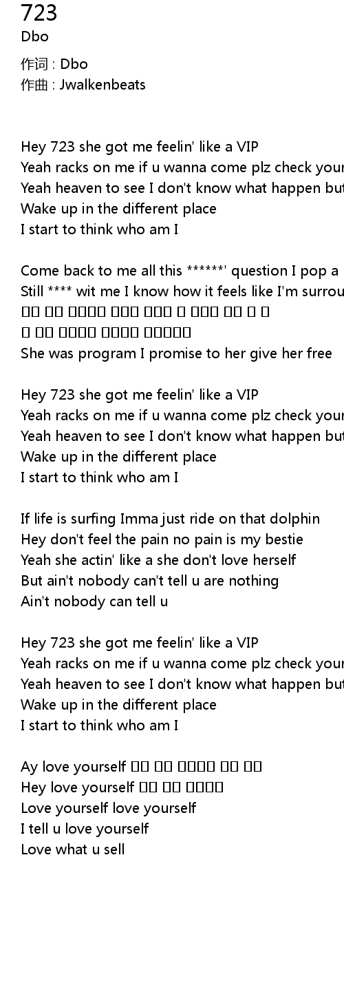 | Hey 723 she got me feelin' like a VIP | |