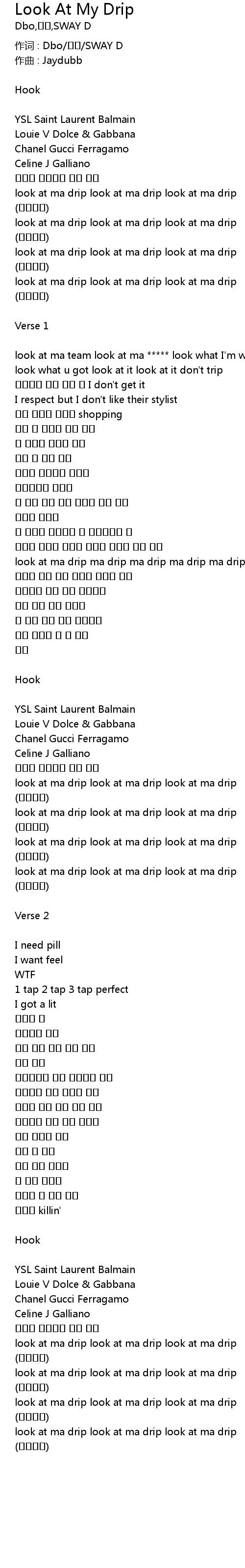 | 作词 : Dbo/유짱/SWAY D | |
