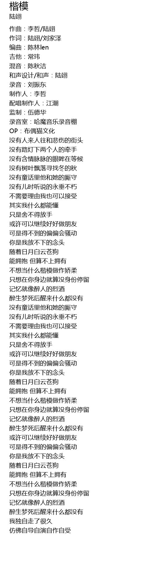 | [00:01.33] | 作词:陆翊/刘家泽 |