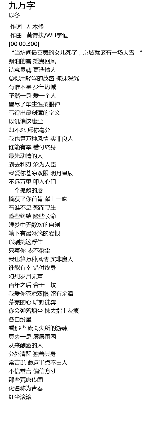 | [00:20.111] | piāo bó de xuě yáo yè huí fēng |