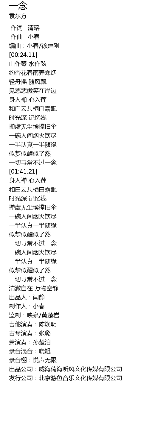 | [03:45.11] | 发行公司:北京游鱼音乐文化传媒有限公司 |