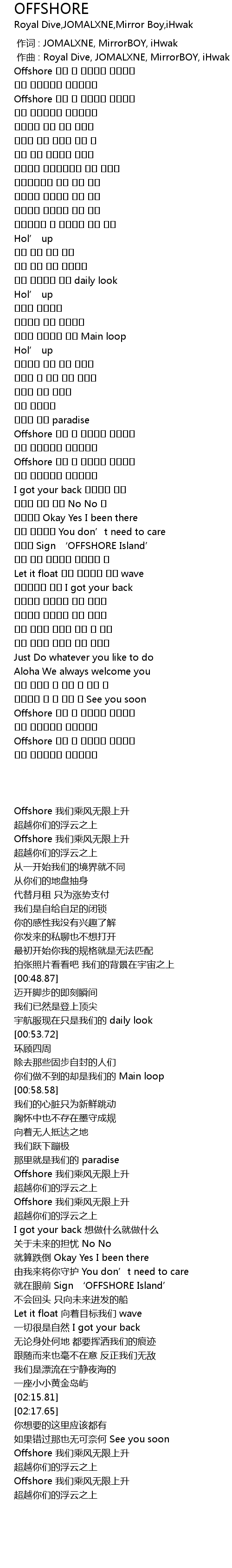 | [01:56.30] | 눈앞에 Sign ‘OFFSHORE Island’ |