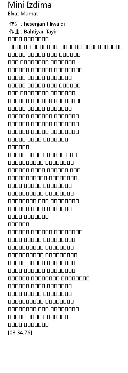| [03:28.48] | ئەمدى مىنى ئىزدىمە |