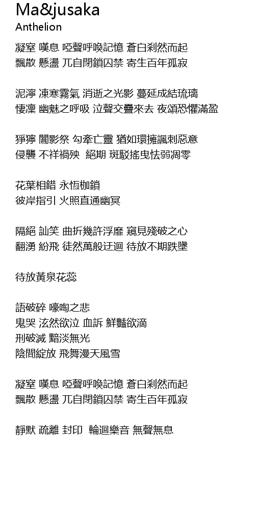 | 悽凜 幽魅之呼吸 泣聲交疊來去 夜頌恐懼滿盈 | |