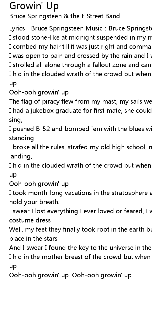 | Ooh-ooh growin' up. Ooh-ooh growin' up |
