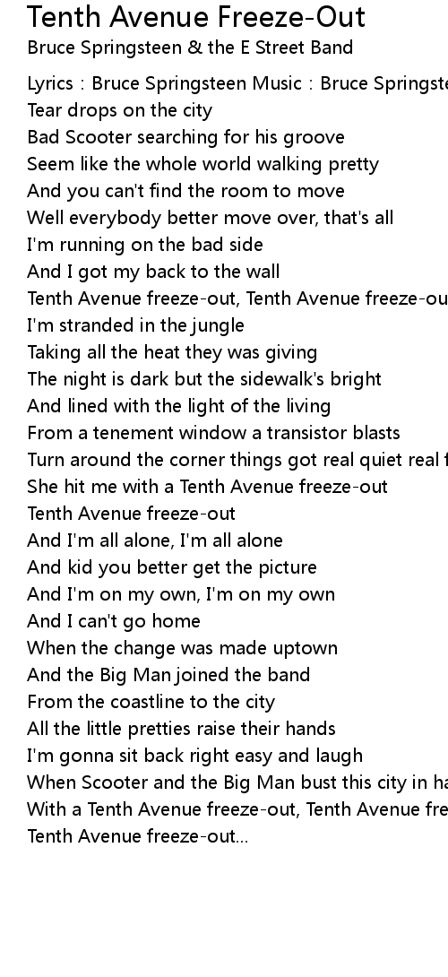 | With a Tenth Avenue freeze-out, Tenth Avenue freeze-out | |